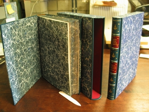 Afin d'harmoniser les couleurs entre les matières, de nombreux papiers marbrés sont produits à l'atelier.
